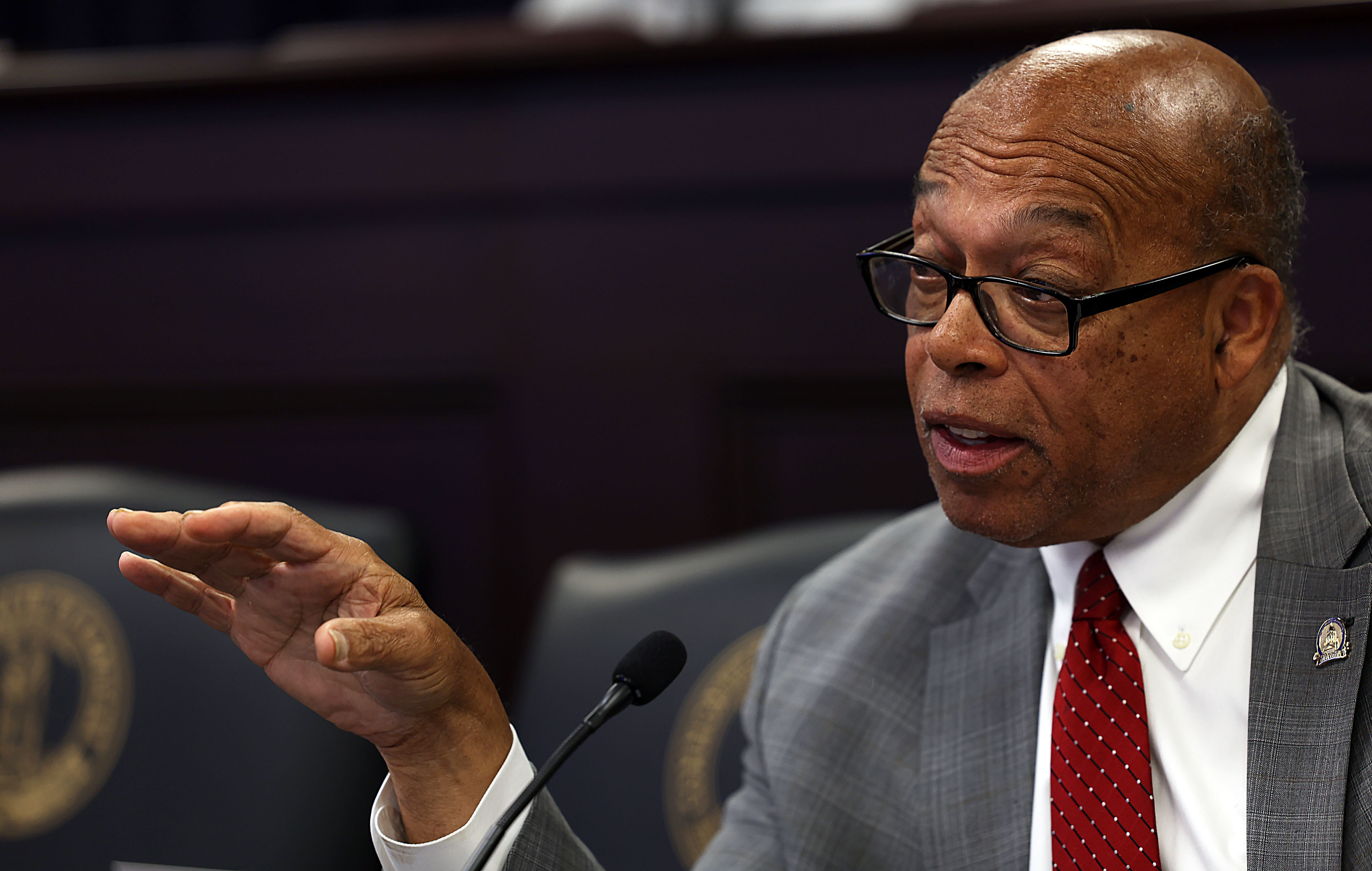 | : FRANKFORT, July 24 – Senate Minority Caucus Chair Reginald L. Thomas, D-Lexington, asks a question about eminent domain reform during the July Interim Joint Committee on Judiciary meeting. | 7/24/2025 11:27 AM | thomas072425.jpg |